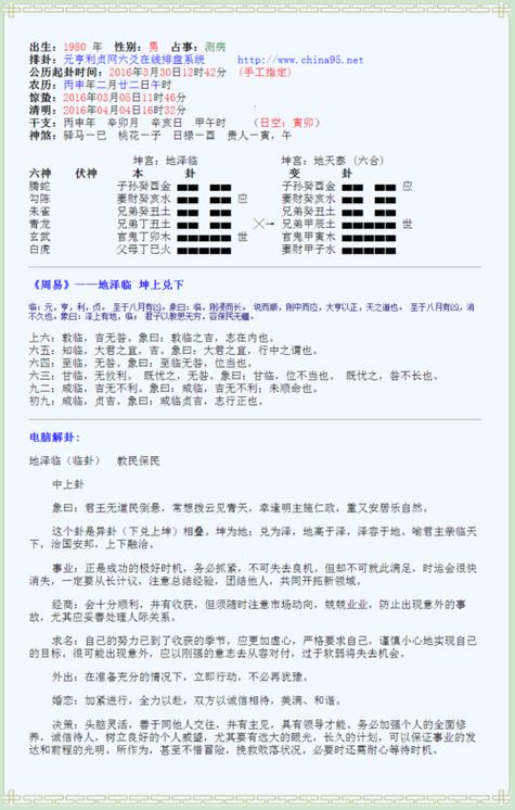 接下来,解卦过程是预测的关键。预测师会结合卦象、爻辞和六亲关系等多重因素进行解读。举例来说,如果某卦中出现了“病”字或相关的爻象,预测师可能会判断出咨询者存在某种潜在的健康风险。