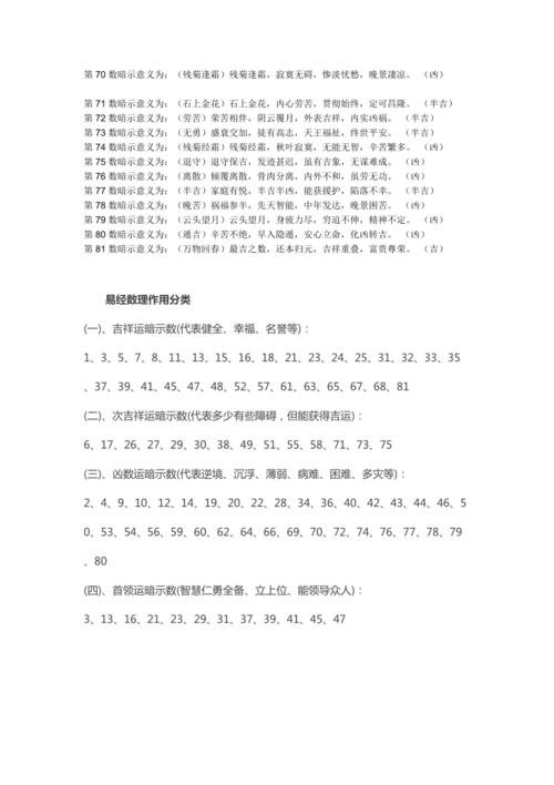 一吉数:一是阳数之初,代表独立自强。吉祥寓意:万事开头,生机勃勃。适用场景:职业、家庭、学习等。二吉数:二是阴数之初,代表...