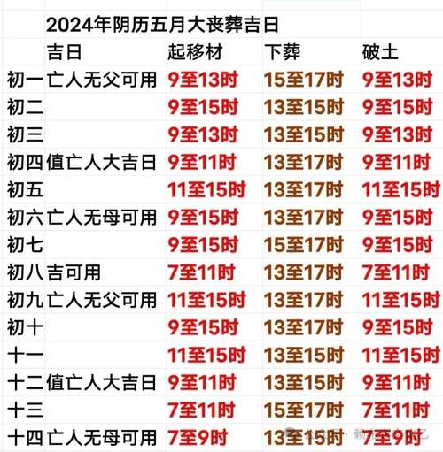 丧葬择日殡葬停棺吉凶方 出殡择日吉日一览表