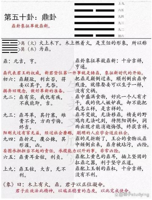 鼎卦,是《易经》六十四卦中的第五十卦,其卦象为下巽上离,亦即风火鼎。鼎,象征着烹饪食物的器皿,在古代社会具有至高无上的象...