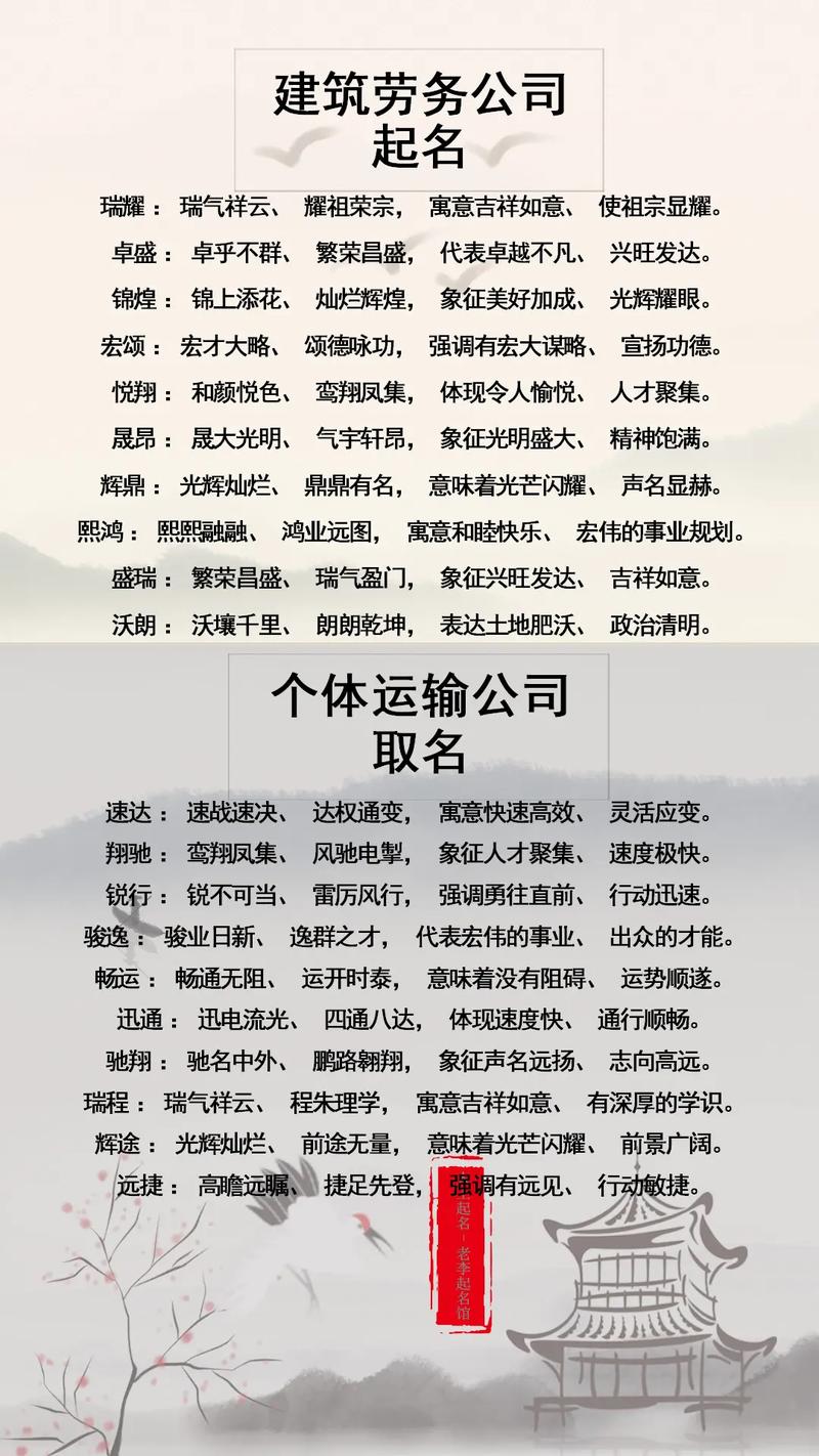 在商海沉浮中,一个寓意吉祥、响亮易记的公司名称,往往能成为企业成功的助推器。尤其对于劳务公司而言,名字不仅代表着企业的形...