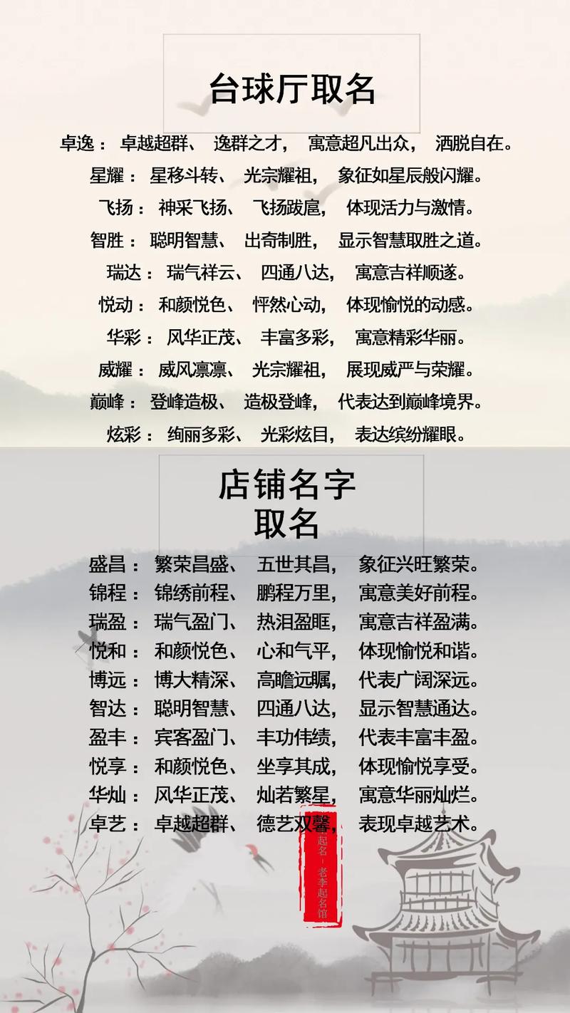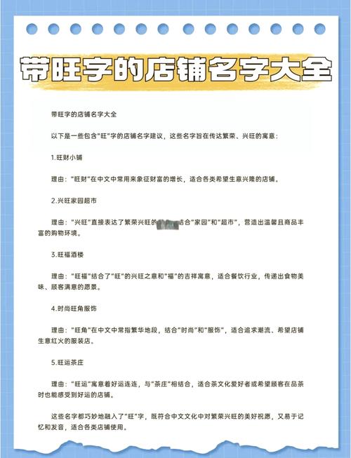 在商业竞争愈发激烈的今天,店名不仅是品牌的代号,更是潜藏着无限能量的象征。一家店铺的名字,往往直接关系到其未来的发展和兴...