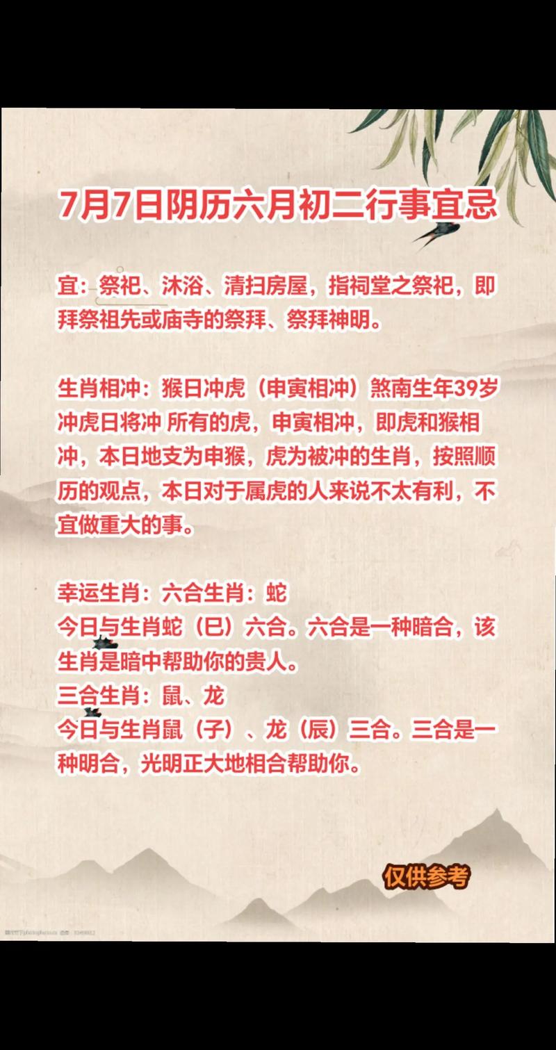 农历六月初二,对应的阳历日期每年不同,因此我们需要确定具体的年份才能准确分析当天的生肖运势。我们可以根据普遍的生肖特性以...