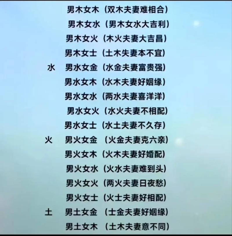 男木女金的夫妻吉凶是一个复杂的问题,涉及五行相生相克的理论、性格互补以及实际生活中的影响。以下是对这一问题的详细分析。五...