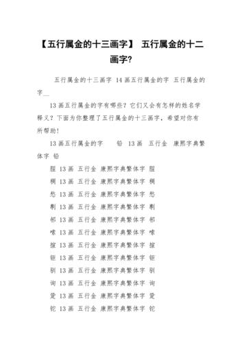 姓名学中,汉字的笔画数与五行属性紧密相连。其中,笔画数为13的汉字五行属金。理解这些汉字的吉凶寓意,对于姓名选择和运势推演...