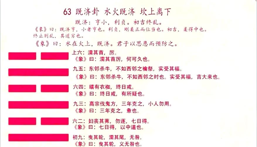 《易经》作为中华古代文化的瑰宝,其中的卦象被认为蕴含着深刻的智慧。既济卦,作为《易经》中的第64卦,不仅是易经学中的重要组...