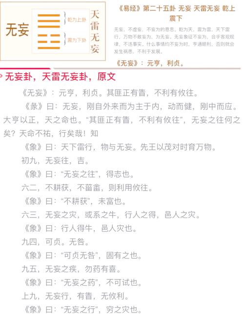 无雷无妄卦,源自《周易》中的一个重要卦象,以其独特的象辞和爻辞,为我们提供了深刻的哲理和启示。无雷无妄卦由“无妄”两字组...