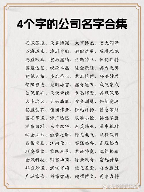 公司名称,不仅是一个简单的标识,更是企业精神、文化和战略的凝练体现。从姓名学的角度来看,公司名称如同一个人的名字,蕴含着...