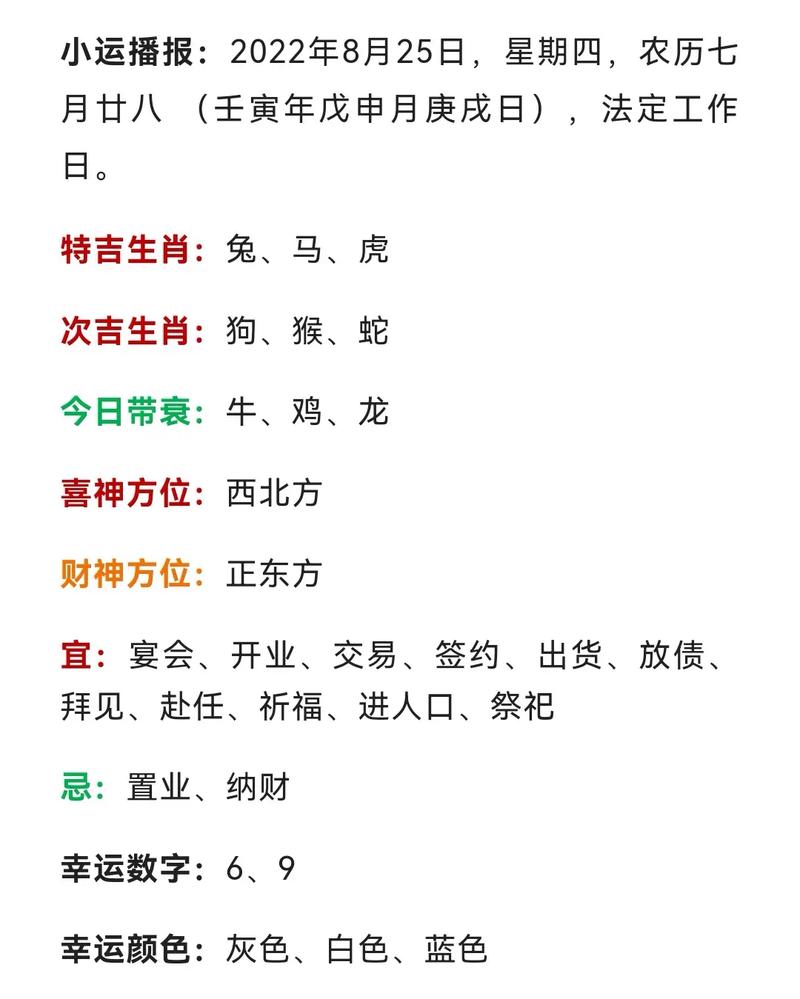 19年8月25日生肖凶吉 今日吉利生肖运势