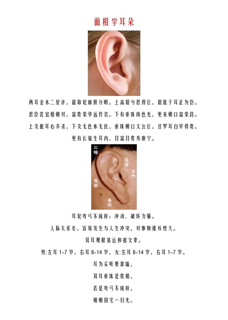 在中华传统文化中,耳相学作为一种独特的相术,蕴含着深厚的哲理和丰富的智慧。耳朵不仅是听觉的器官,更是人性和命运的映射。你...