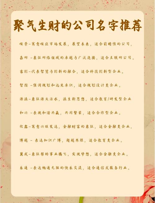 公司名称,绝非简单的文字组合,而是企业形象的最初呈现,更是潜在的运势载体。古人云:“名不正则言不顺,言不顺则事不成。”取...