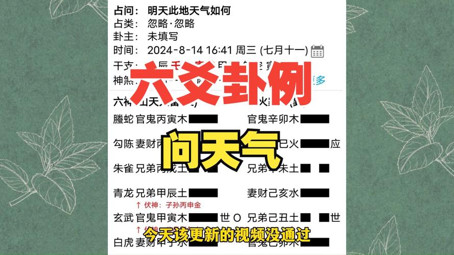在中国传统文化中,算卦是一种流传千年的预测工具,许多人在出门前会询问天气、吉凶,以期趋吉避凶。很多人忽略了天气与命运之间...