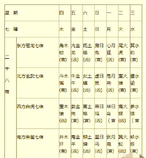 二十八宿吉凶详解完整表 二十八宿顺口溜歌