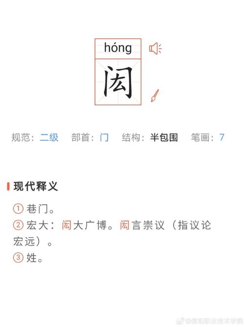 “闳”字,作为汉字中的一颗璀璨明珠,其字形结构引人注目。该字由“门”和“宏”组成,表明一种宽广和开放的含义。在古代汉语中...