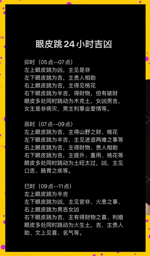 在中国传统文化中,眼睛跳动被认为是一种预兆,尤其是周日的眼睛跳更是引起了人们的广泛关注。今天,我们将深入探讨周日眼睛跳的...