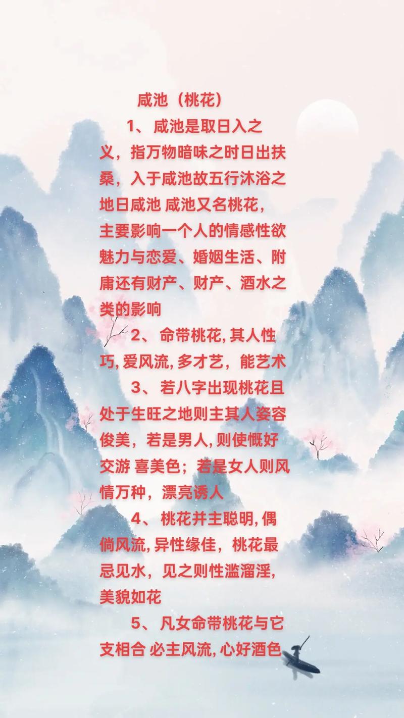 一、咸池入命之吉兆咸池为桃花之星,主感情运势。若咸池入命宫,且化吉,则预示感情和睦, 人缘佳美, 异性缘旺盛. 特别是对于女...
