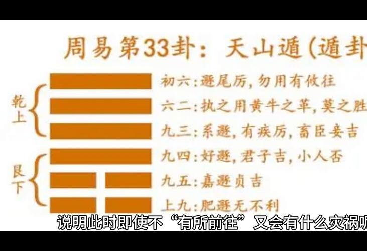 卦象概述天山遁卦,下艮上乾,坎离二用神皆藏,卦象示退守避险。遁者离群索居,避世潜藏,以待时机。六爻吉凶初爻:动爻,阴爻居...