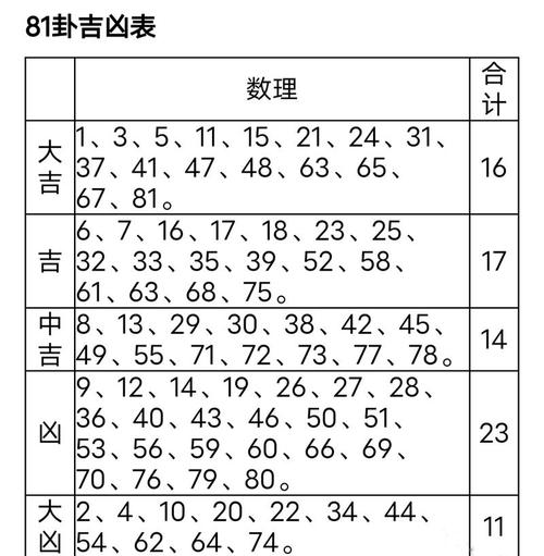 八十一吉凶是什么 八十一格吉凶表