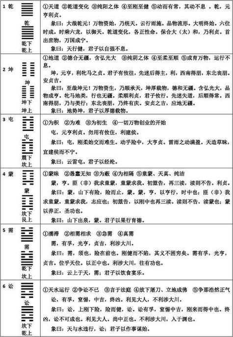 易经共有64卦,其中31卦为吉祥之卦,其余为凶险之卦。以下将逐一详解31卦的吉凶寓意:1. 乾卦:元亨利贞吉兆:,坚毅不拔,事业...
