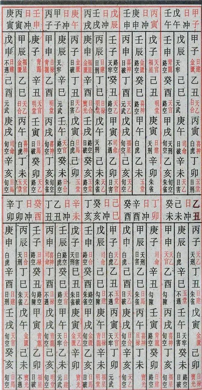 六十甲子逐日吉凶 六十甲子年月日吉凶对照表