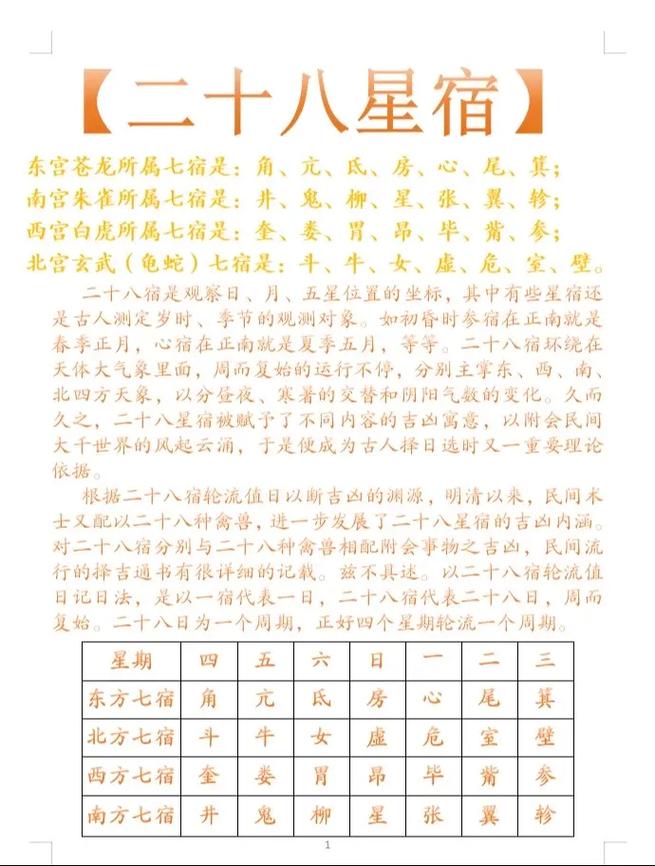 二十八宿生人吉凶详解 二十八宿吉凶一览表