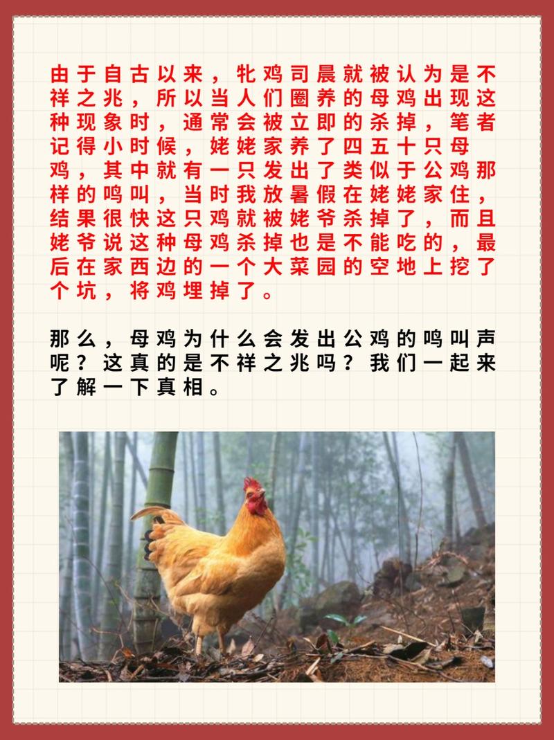 母鸡打鸣在民间流传着诸多吉凶预兆,引发人们的猜测和讨论。这些预兆是否具有科学依据,值得深入探究。本文将从生物学、心理学和...